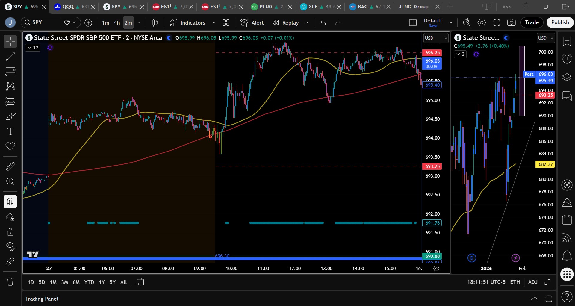 Monday’s framework emphasized that as long as SPY held above $685, bulls would remain in control despite choppy, rangebound conditions, with upside attempts likely to stall near the $695–$700 zone ahead of major catalysts.