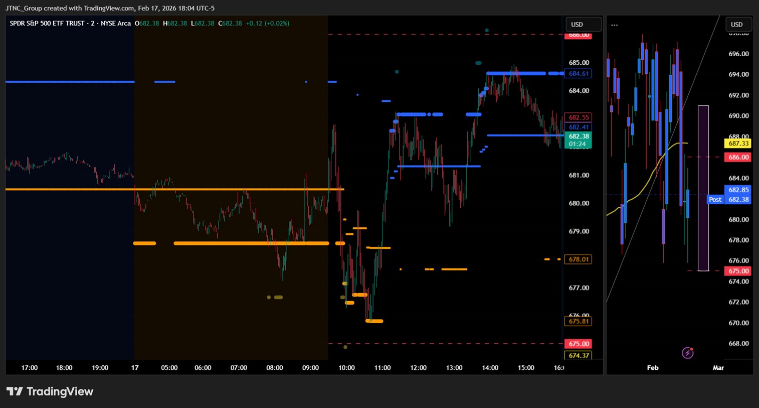 Friday’s framework warned that the market had rotated back into the $675 to $685 range, allowing bears to remain engaged and emphasizing that reclaiming $685 was necessary for bulls to regain near-term control.