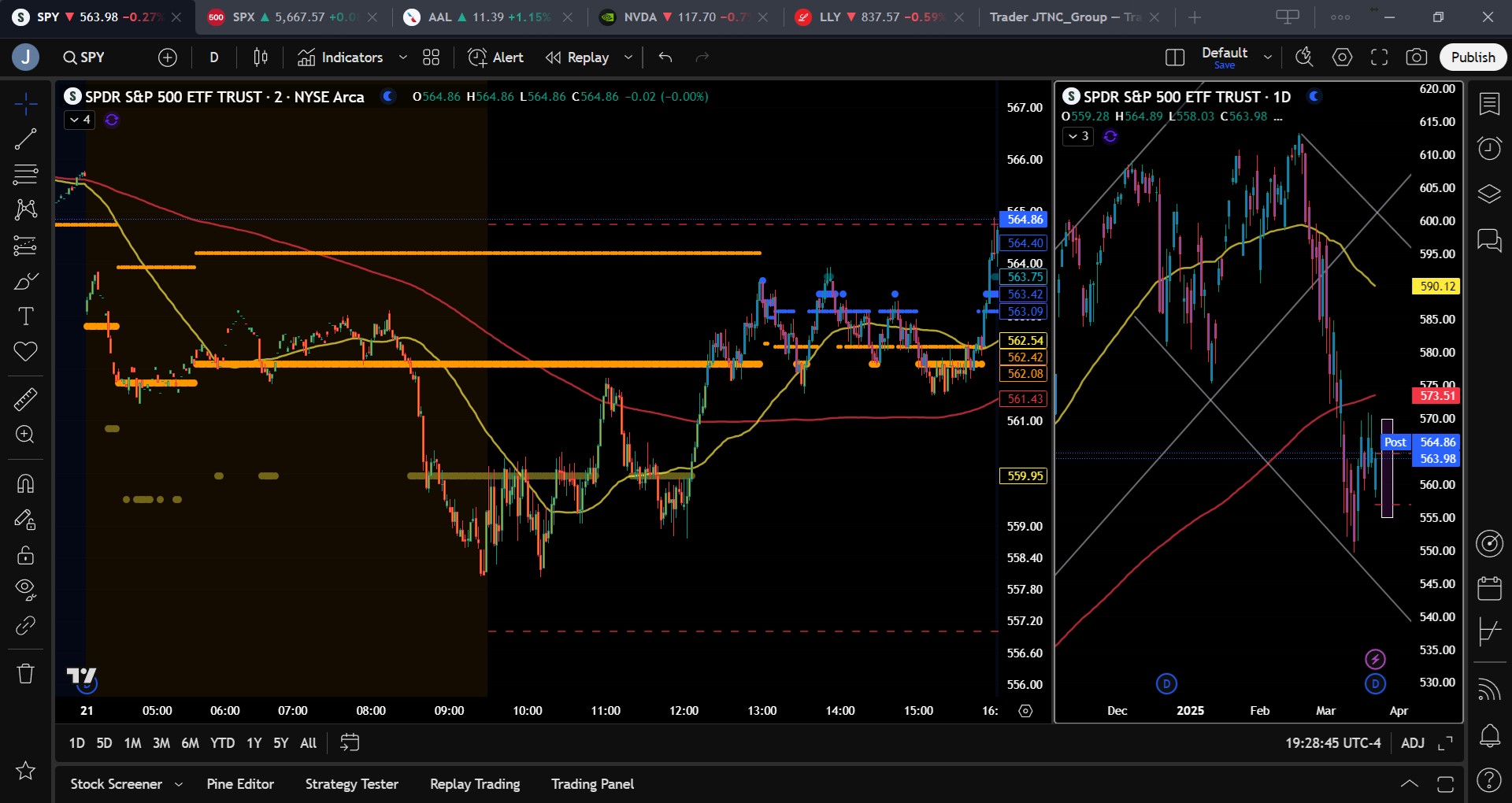 On the downside, look for short trades on rejection at $566 or $570, targeting $560 and $558. Below $558, $555 becomes the next support zone, with a potential flush toward $550. Given ongoing trade tensions and macro headwinds, short trades carry a slight edge but should be managed with tight stops due to volatility.