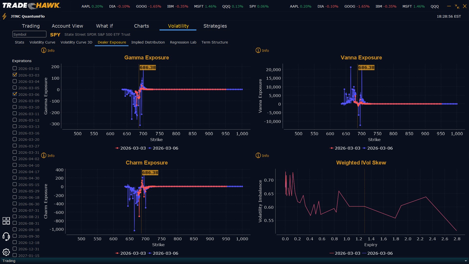 With SPY consolidating near $686 after a relatively flat session, traders should watch for a break above the $688.62 high to target $690-692 levels, while a break below $678 support could see weakness toward $675. The elevated volume suggests institutions are positioning, so favor quick scalps over large swing positions in this tight range. Keep stops tight given the compressed volatility and mixed sector rotation. Risk management remains critical as we navigate this consolidation phase with the 10-year yield creeping higher toward concerning levels above 4%. Be sure to review the premarket analysis posted before 9 AM ET for any changes in the model's outlook and Dealer Positioning.