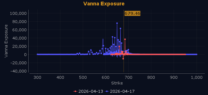 Dealers are selling SPY $680 to $700 and higher strike Calls, indicating the Dealers' belief that higher prices may be in store. The ceiling for Monday appears to be $685. To the downside, Dealers are selling $677 Puts while buying $679 to $611 and lower strike Puts in a 2:1 ratio to the Calls they're selling as well as selling ATM Puts in small size which indicates their belief that prices will continue higher on Monday or at least not fall below $677. Dealers do not sell ATM Puts unless they believe there is a floor in the market. This positioning reflects their measured optimism for upward movement, though they've established clear resistance around the $685 level. Dealer positioning is unchanged at neutral/slightly bullish.