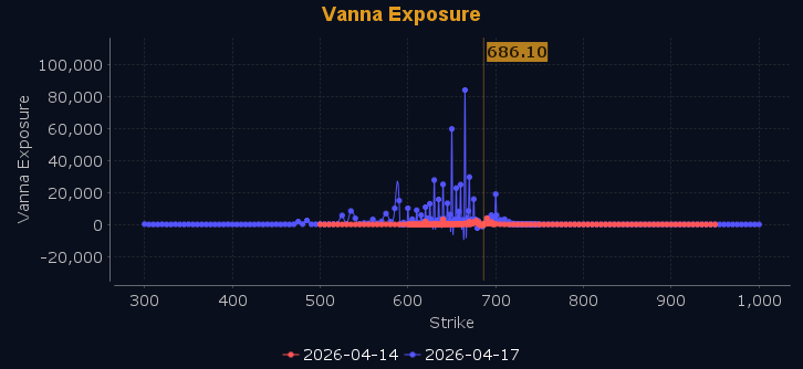 Dealers are selling SPY $687 to $720 and higher strike Calls, indicating the Dealers' belief that higher prices may be in store. The ceiling for next week appears to be $700. To the downside, Dealers are selling $679 to $686 Puts while buying $679 to $585 and lower strike Puts in a 5:1 ratio to the Calls they're selling displaying their belief that prices will continue to rise through the end of the week. Dealers do not sell ATM Puts unless they believe there is a floor in the market at $679. This shift shows dealers have loaded up on cheap protection last week and now seem positioned to participate in a continuation of the recent rally, setting up the market for new all time highs. For the week Dealer positioning is unchanged at bearish. We advise reviewing Dealer positioning daily for directional clues. These positions evolve quickly and tracking them is essential for staying ahead of shifting market sentiment.