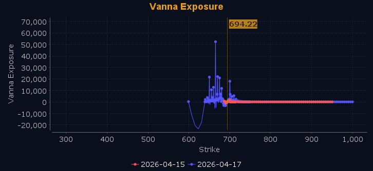 Dealers are selling SPY $695 to $725 and higher strike Calls, indicating the Dealers' belief that higher prices may be in store. The ceiling for next week appears to be $700. To the downside, Dealers are selling $684 to $694 Puts while buying $683 to $585 and lower strike Puts in a 4:1 ratio to the Calls they're selling displaying their belief that prices will continue to rise through the end of the week. Dealers do not sell ATM Puts unless they believe there is a floor in the market at $688. This shift shows dealers have loaded up on cheap protection last week and now seem positioned to participate in a continuation of the recent rally, setting up the market for new all time highs. For the week Dealer positioning is unchanged at neutral/slightly bearish. We advise reviewing Dealer positioning daily for directional clues. These positions evolve quickly and tracking them is essential for staying ahead of shifting market sentiment.