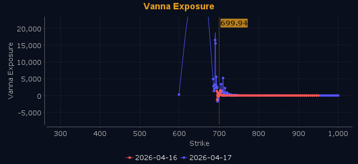 Dealers are selling SPY $700 to $725 and higher strike Calls, indicating the Dealers' belief that higher prices may be in store. The ceiling for next week appears to be $710. To the downside, Dealers are selling $699 to $696 Puts while buying $695 to $585 and lower strike Puts in a 3:1 ratio to the Calls they're selling displaying their belief that prices will continue to rise through the end of the week. Dealers do not sell ATM Puts unless they believe there is a floor in the market at $696. This shift shows dealers are selling ATM Puts into the end of the week indicating the belief that prices will continue to rise. For the week Dealer positioning is unchanged at neutral/slightly bearish. We advise reviewing Dealer positioning daily for directional clues. These positions evolve quickly and tracking them is essential for staying ahead of shifting market sentiment.