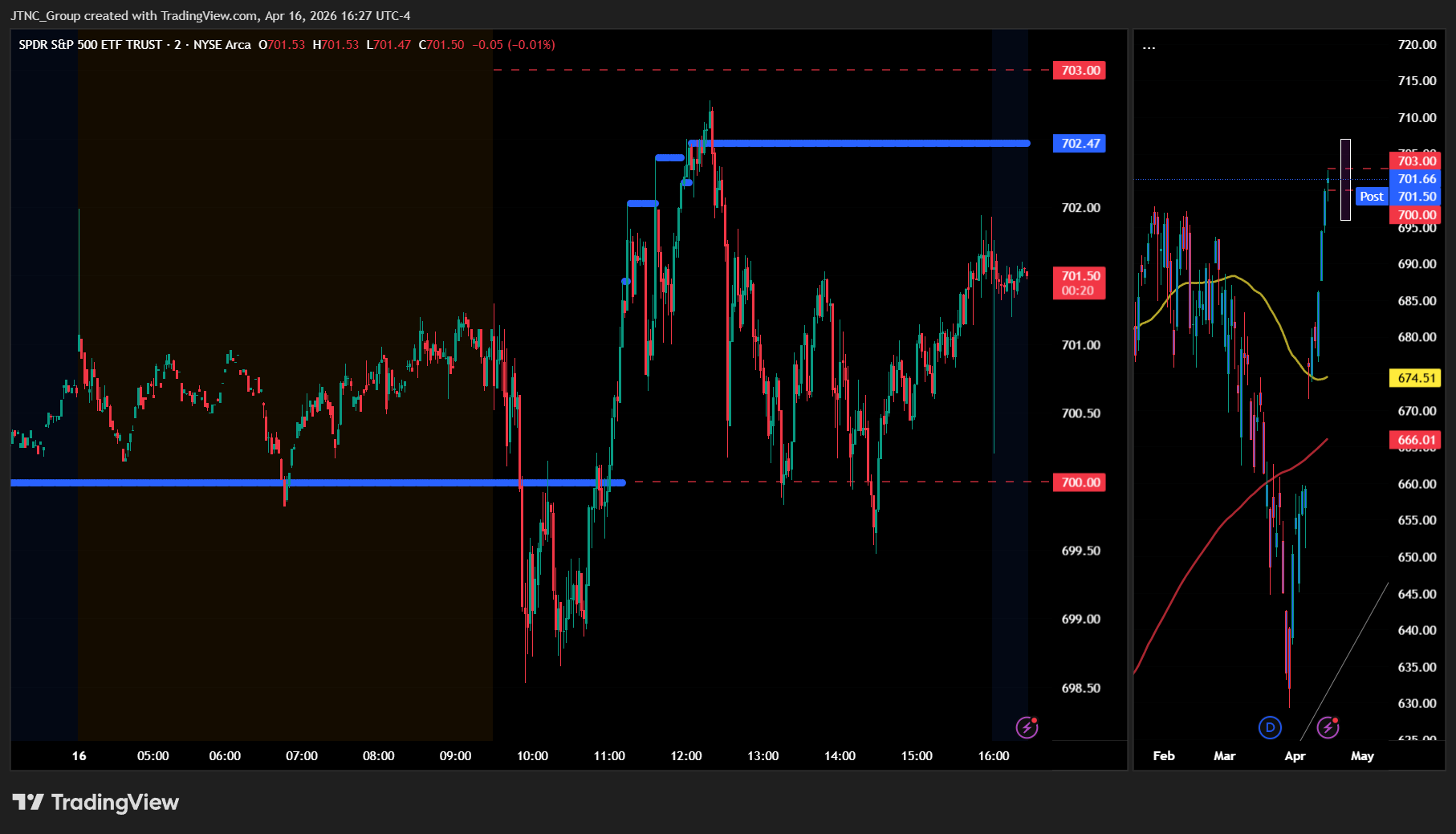 Our trading strategy captured the session's dynamics effectively, particularly our identification of the $700-$701 resistance zone as a compelling area for both directional positioning and profit-taking opportunities. The framework's emphasis on monitoring volume sustainability proved valuable as the 43.44 million share average volume confirmed institutional participation without excessive speculative activity. Our bullish positioning strategy targeting any dips toward the $695-$696 support band remained intact throughout the session, while our bearish opportunities around the $700-$701 resistance materialized as price action tested those levels before consolidating near the upper boundary.