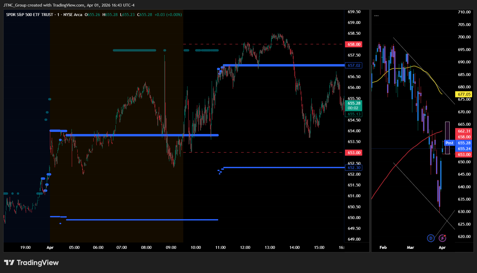 The actual market performance dramatically exceeded the bullish scenario as SPY opened at $653.90 well above both the overnight level and all premarket targets. The session reached a high of $658.52 that surpassed even the most optimistic $645 target by over thirteen points, while the close at $655.19 delivered a solid 0.75% gain. The low of $653 held well above the bias level throughout the entire session, confirming the analysis's observation about market participants' strong motivation to carry optimistic momentum forward. The elevated trading volume validated the framework's expectation of significant buyer engagement, though the extent of the opening gap and sustained strength well beyond $645 demonstrated that the rally proved far more powerful than the premarket projections anticipated.