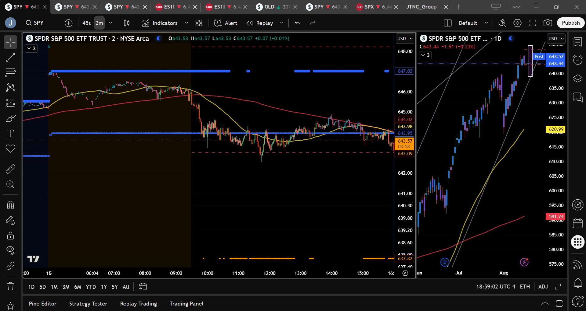 On Thursday we wrote, “Friday brings…OPEX, which tends to bring whippy, choppy action,” and noted, “a close above $642 paired with new highs will likely continue to pressure market participants to buy.” We also noted “we expect the market to drift higher overnight toward the $646 area, which could attract sellers.” With that context and with the MSI in a Bullish Trending Market State with no extended targets above, and the premarket setting up a textbook failed breakout, we entered short at $646 on a double top at the open, targeting MSI support at $644, which hit before 10 a.m.. We then looked to the premarket report for T2 at $643, reached by noon, at which point a textbook failed breakdown led us to close the final 10% of the short. While we considered reversing long, readers know we avoid trades within an MSI Ranging State, and with one solid winner in the bank, a Friday in the summer, and OPEX in a market near all-time highs, the edge simply wasn’t strong enough to warrant re-entry, so we started the weekend early, capping off a great week with no losers and solid profits each day, thanks to a clear plan, disciplined execution, and strong alignment between MSI’s directional cues, our broader market model, and key technical levels. The MSI continues to be a cornerstone of our consistent trading process.