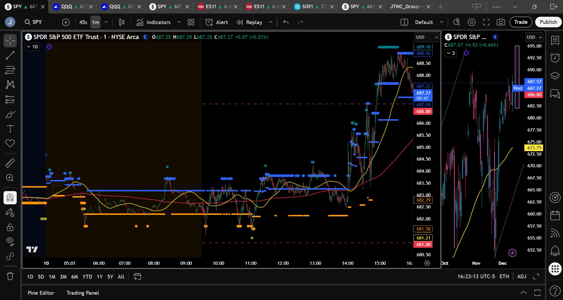 Use strength into $687–$689 to trim longs or initiate tactical shorts. Buy dips toward $682–$680 with defined risk. With FOMC behind us, the market may grind higher into year-end. Stay flexible, lean bullish, and trust the MSI for key intraday pivots. Avoid chasing breakouts without confirmation, and keep risk tight as we near all-time highs.