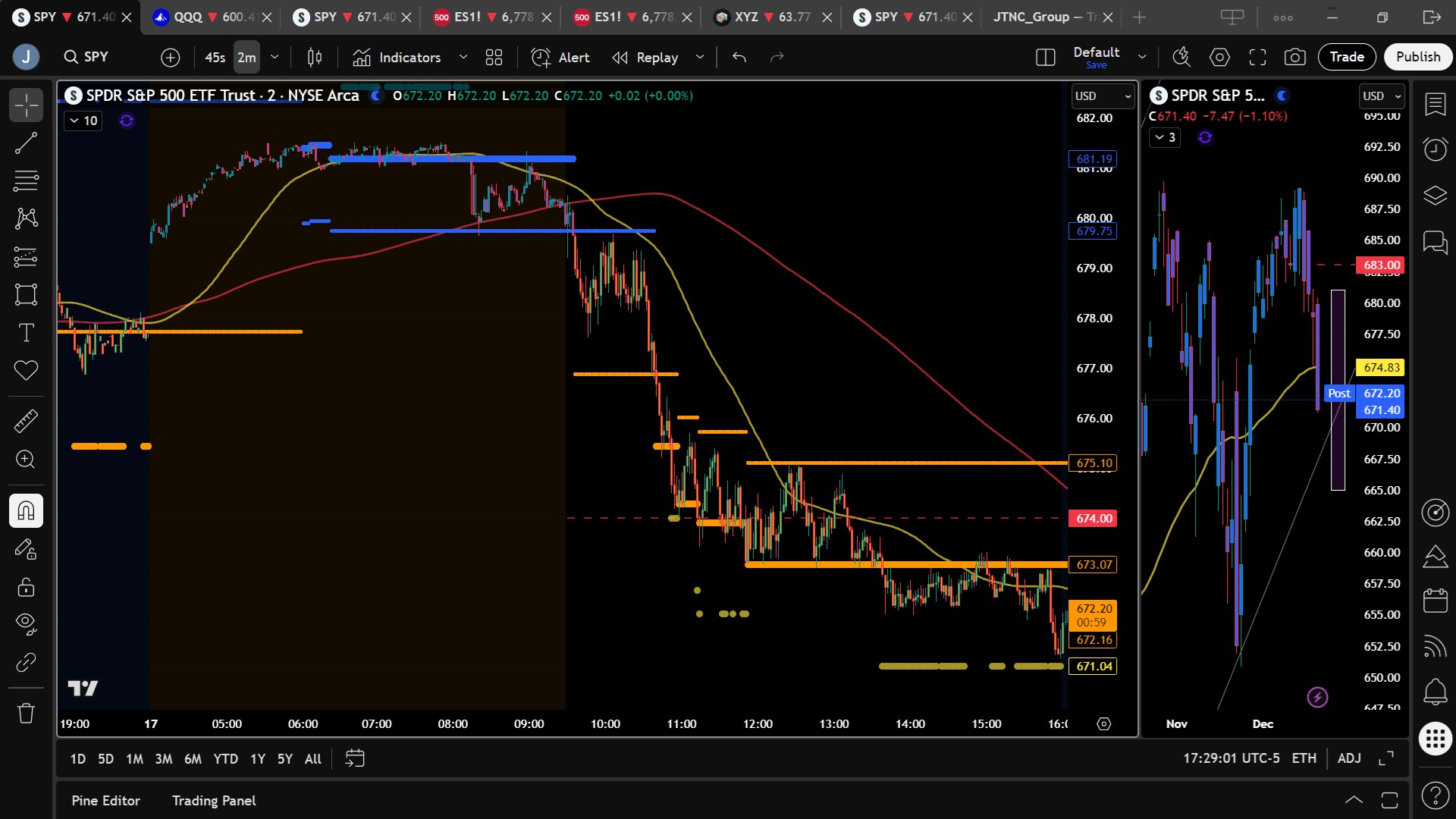 In Wednesday’s premarket notes posted at 7:43 AM, SPY was trading around $681.31, with a bias level set at $680.50. The plan called for cautious upside attempts toward $683–$685 as long as price held above the bias, while warning that a break below $680.50 would likely lead to consolidation toward $678 and possibly $674 if selling accelerated. We explicitly noted hesitation on the upside and advised caution on aggressive longs absent sustained buying pressure.