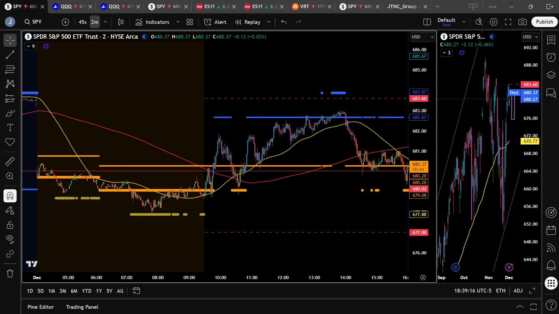 Trim longs near $683 and wait for confirmation before adding new exposure. Buy dips into $677–$678 with clear stops below $675. Watch for failed breakouts above $683.60 for potential fades. Stay aligned with MSI and dealer levels. With macro data and year-end flows in play, this week demands patience and strict risk management. Maintain a slight bullish lean above $670, but respect price action and trade level-to-level.